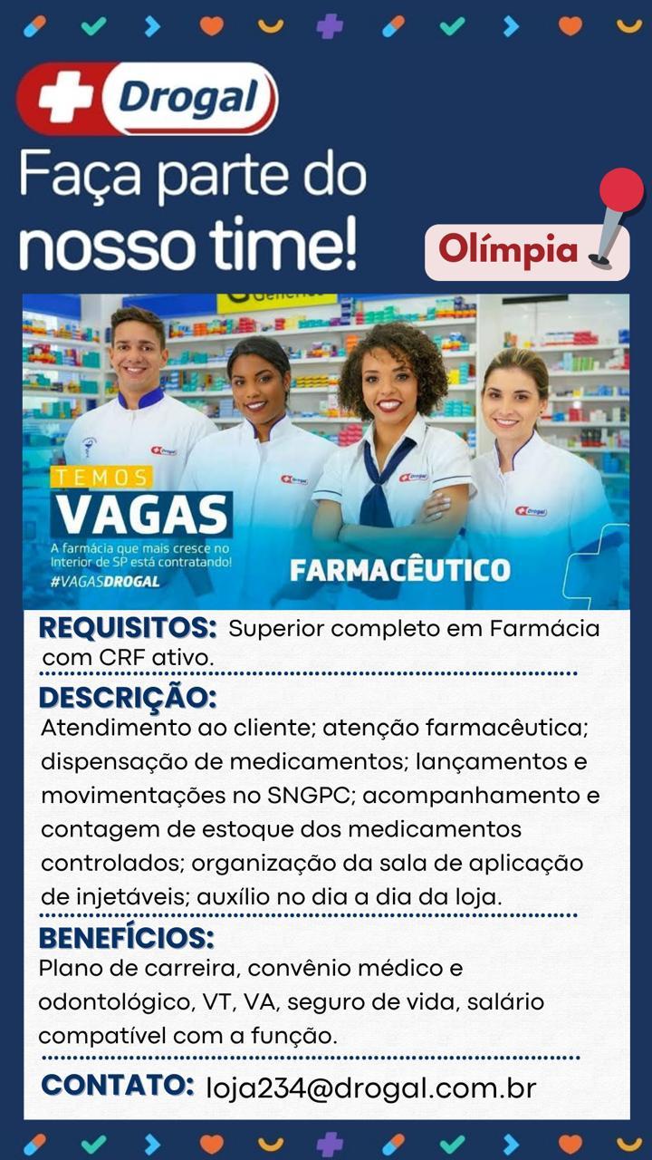 #drogal #vaga #farmaceutico #trabalheconosco #oportunidade #olimpia