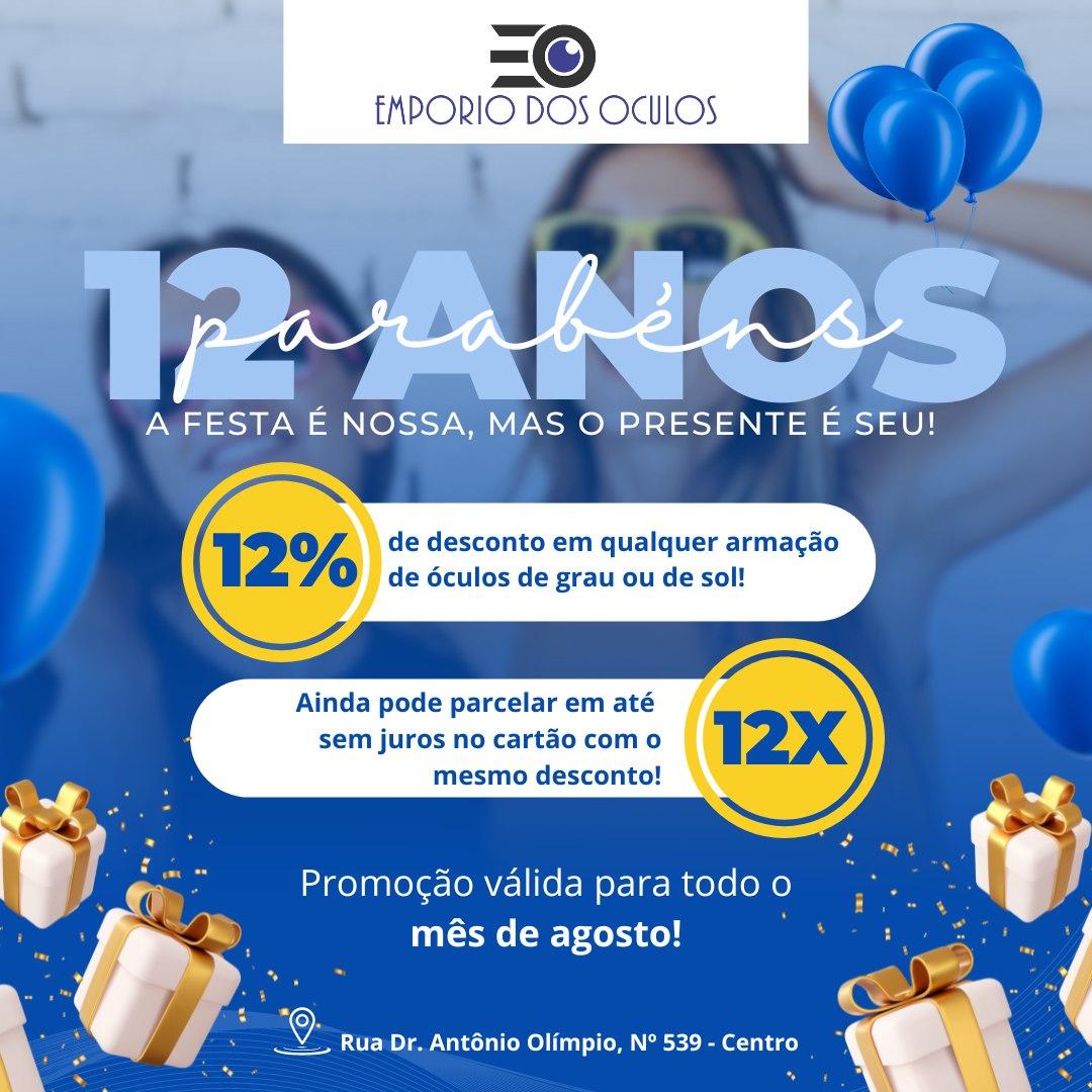 #EmpórioDosÓculos #Aniversário #Descontos #Promoção #ÓculosDeGrau #ÓculosDeSol #Olímpia #12Anos