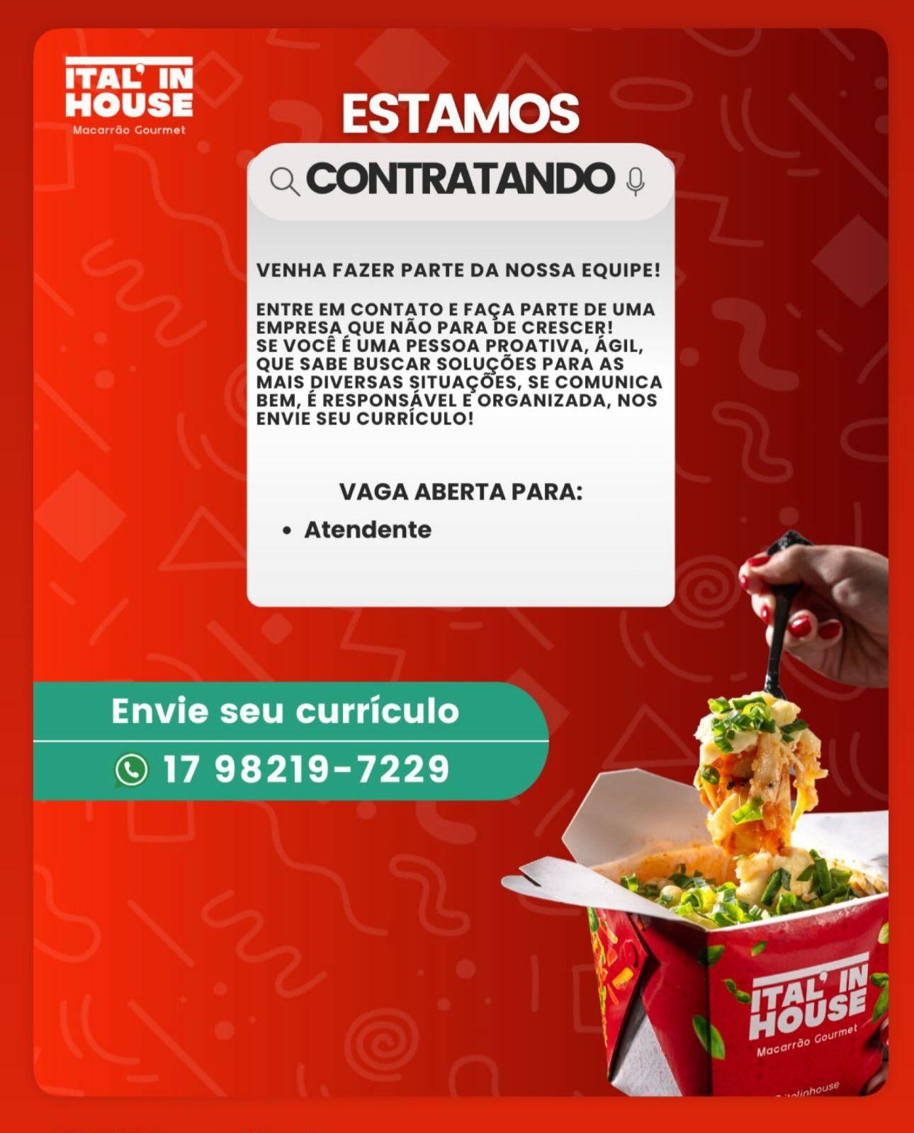 #VagaDeEmprego #ItalinHouse #EstamosContratando #Atendente #TrabalheConosco #OlímpiaSP