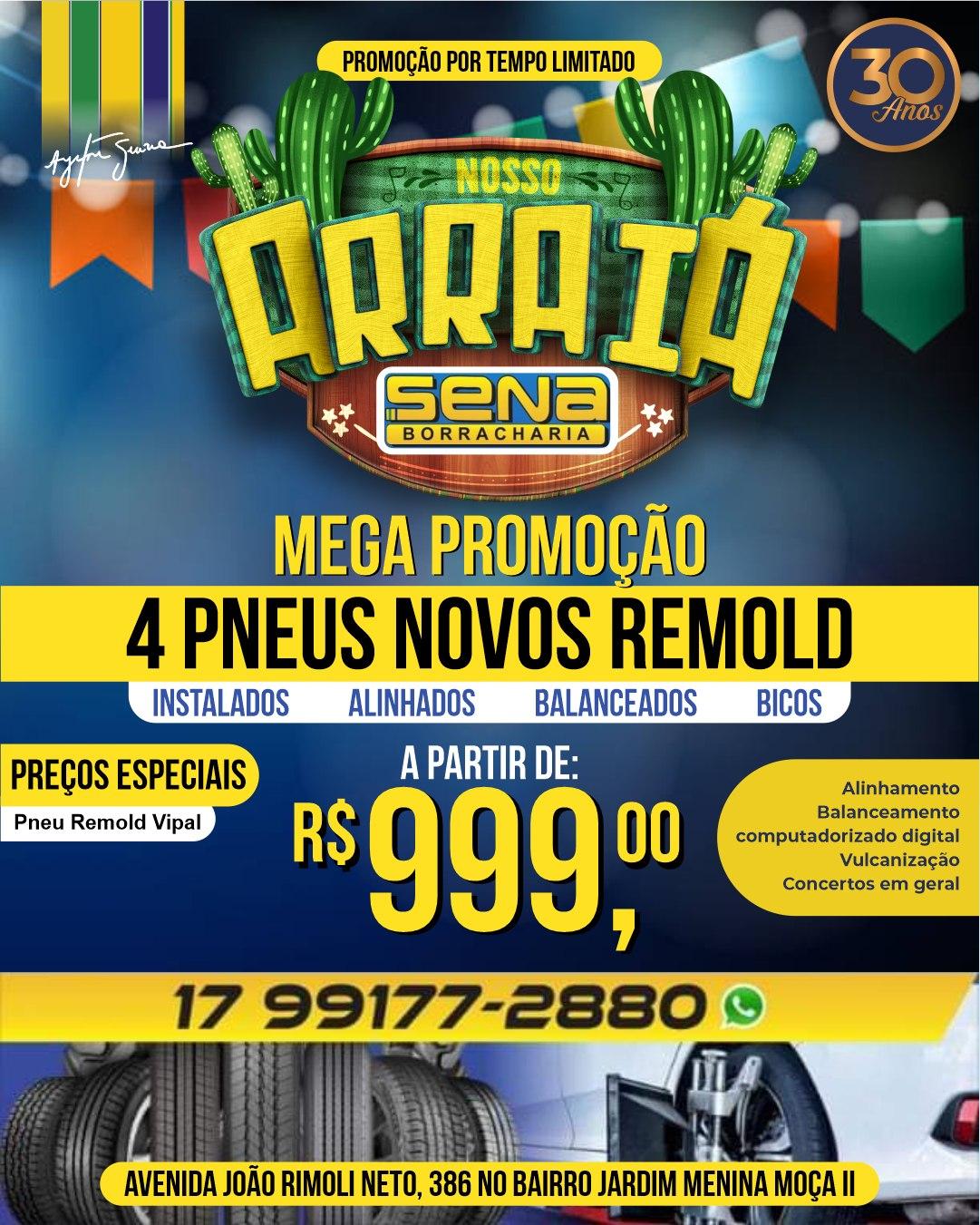 #ArraiaDoSena #PromoçãoDePneus #PneuRemold #SeuCarroMerece #OfertasDeVerdade #SenaBorracharia