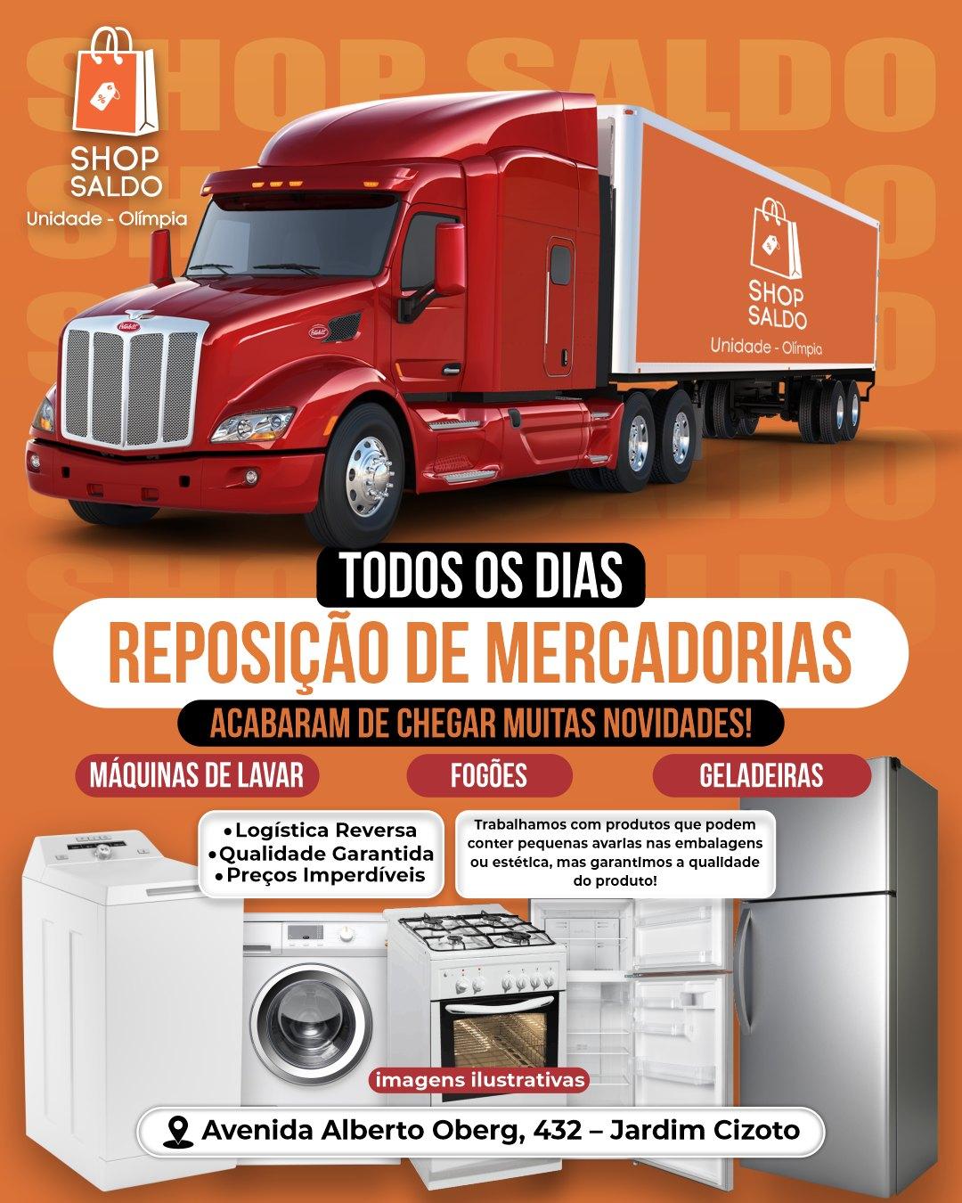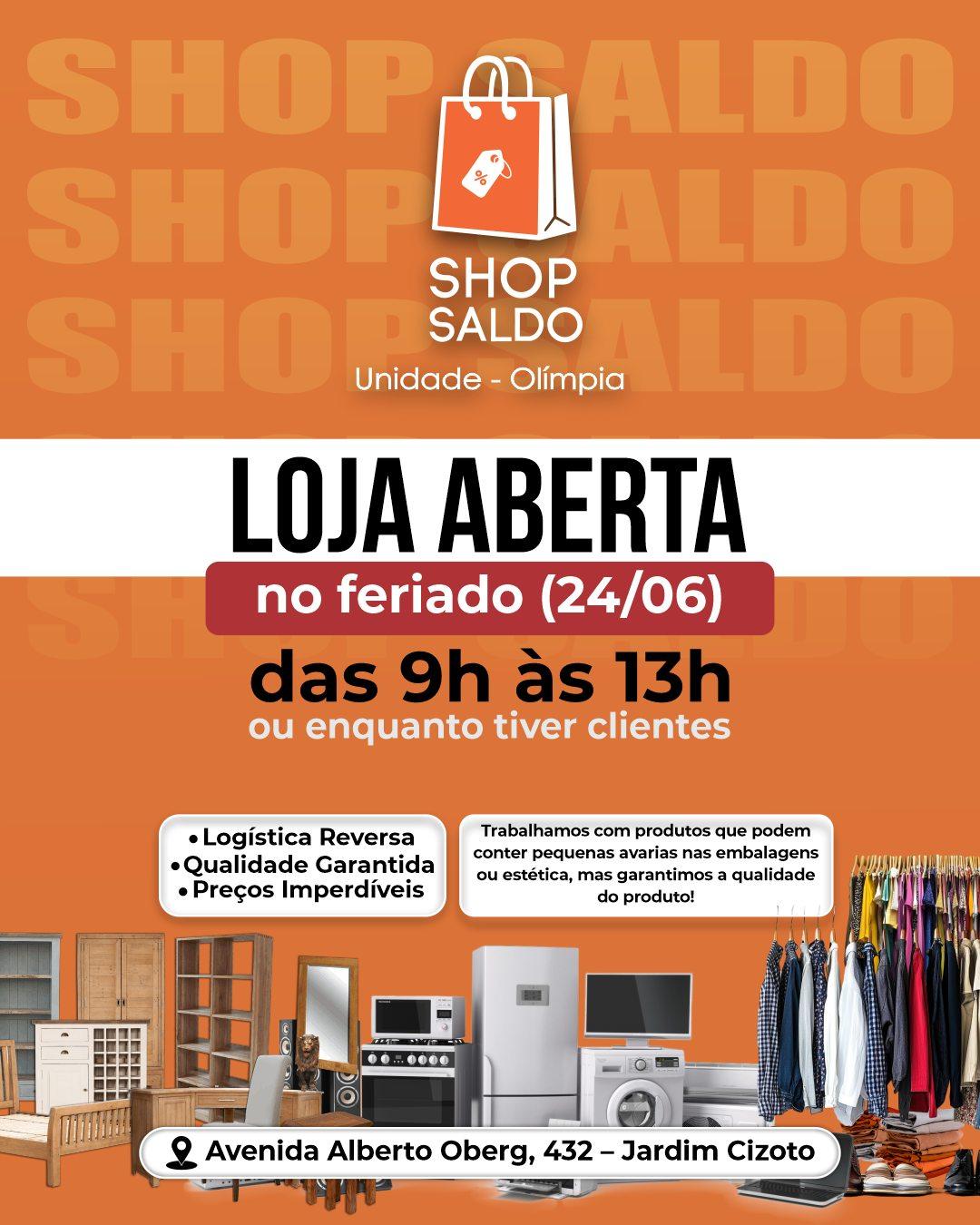 #ShopSaldoOlímpia #AbertoNoFeriado #OfertasDeEletro #Geladeiras #Fogões #Lavadoras #GarimpoDeOfertas #PreçoDeInternet