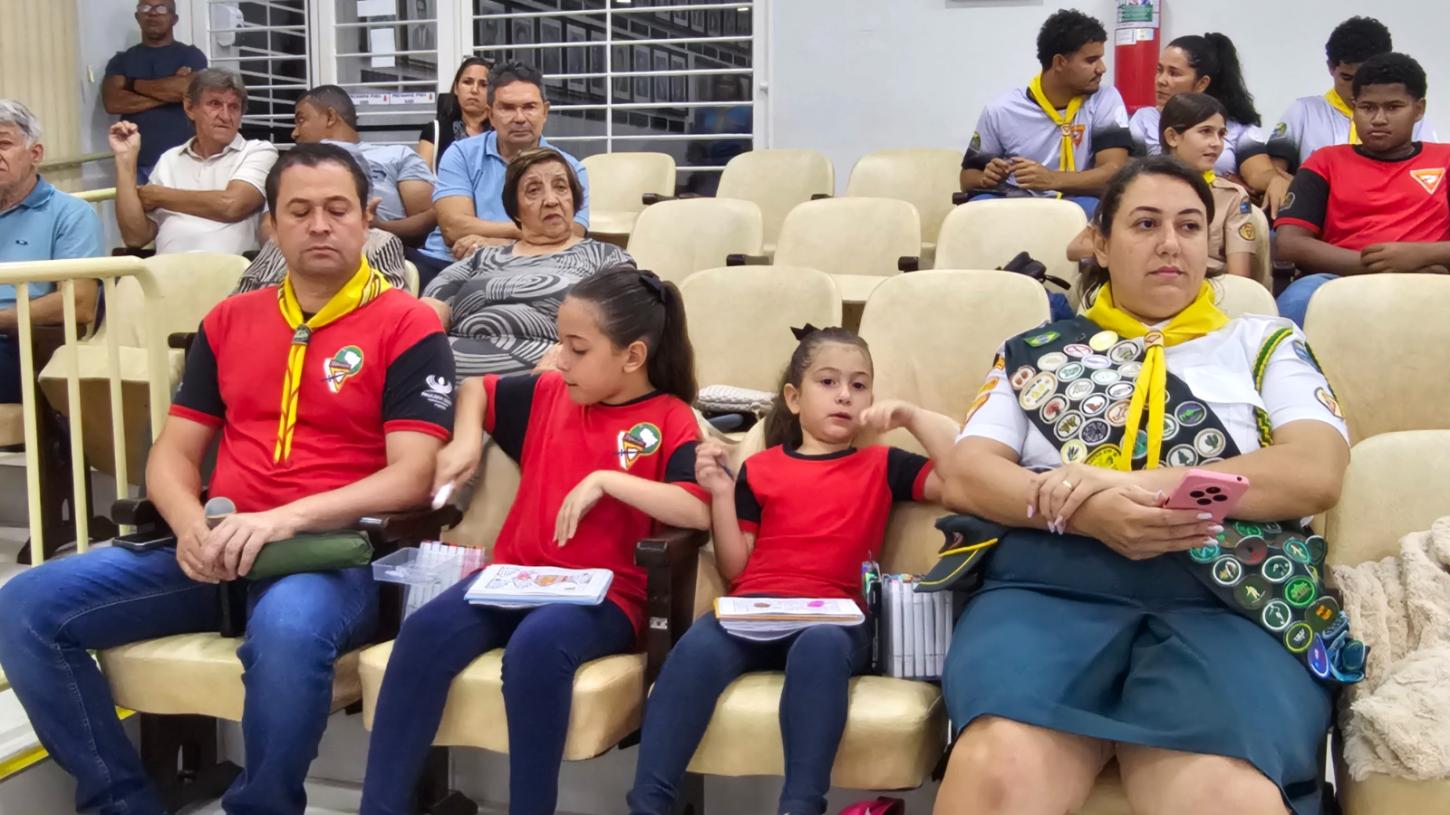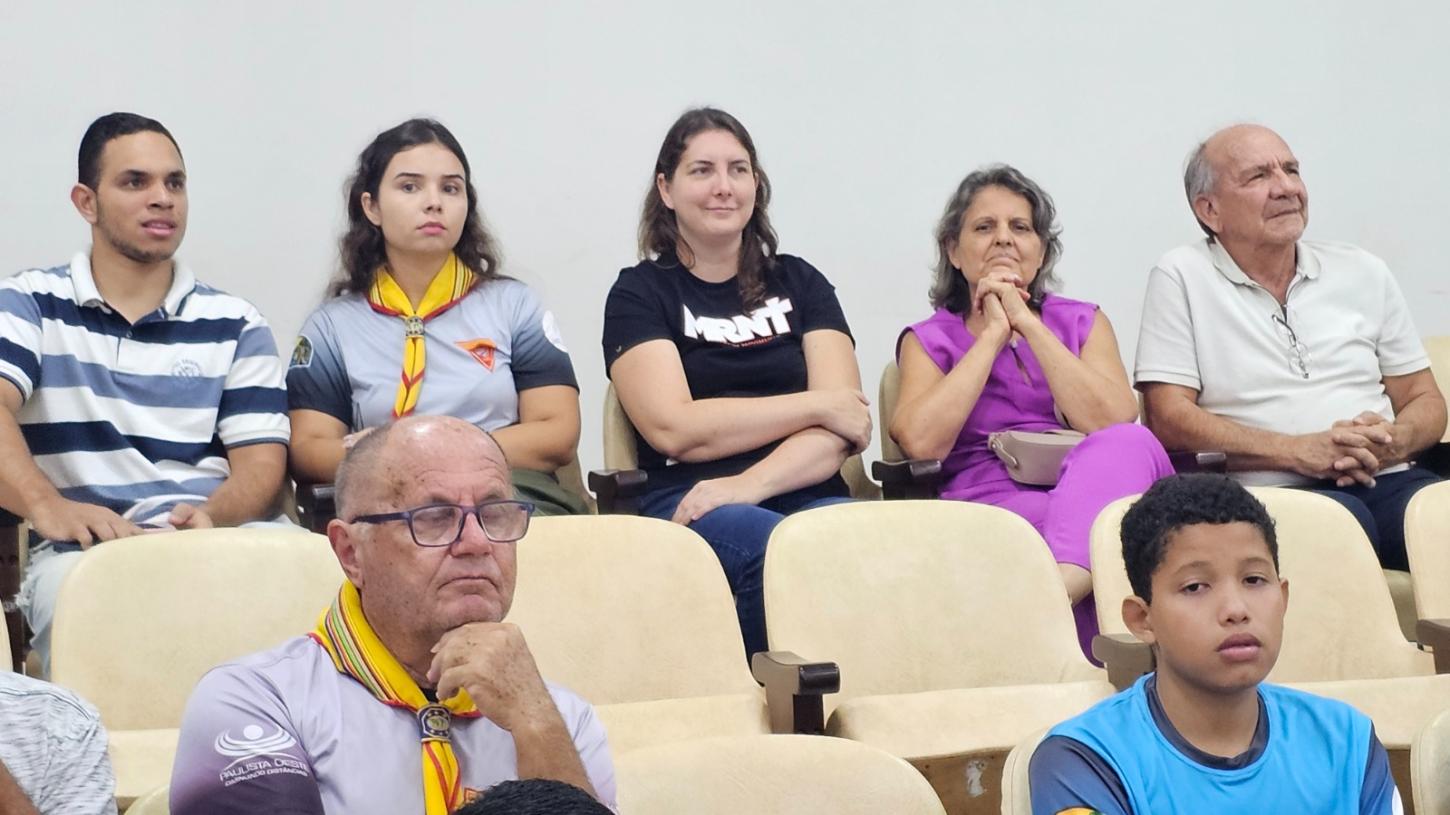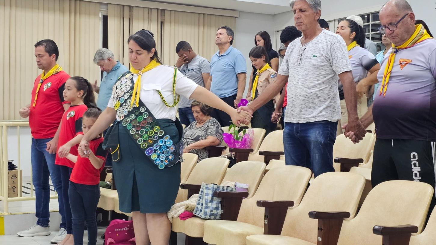 Um dos momentos centrais da noite foi a leitura da biografia de Ercídio Manzolli, feita pela jovem Desbravadora Anaí. O texto relembrou a chegada da família a Olímpia em 1941, vinda de Araraquara, trazendo mercadorias para abrir um pequeno comércio de armarinhos e tecidos que mais tarde se tornaria a tradicional Casa Manzolli.