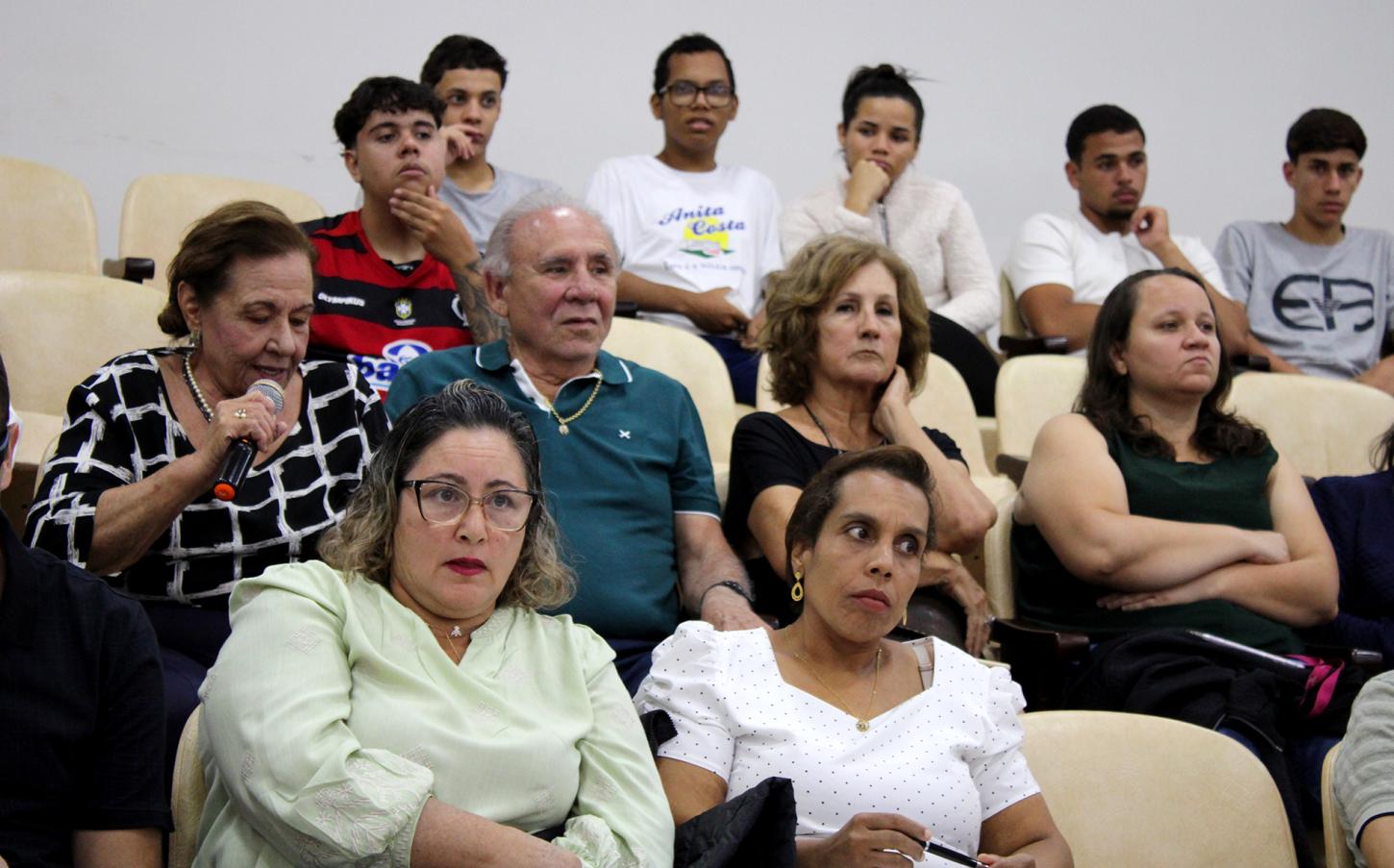 Os estudantes dos cursos de Administração e Logística da Escola Dona Anita Costa, de Turismo da Escola Reis Neves e do EJA (Educação de Jovens e Adultos) da Escola Maria Ubaldina acompanharam as apresentações e participaram do debate sobre as finanças do município.