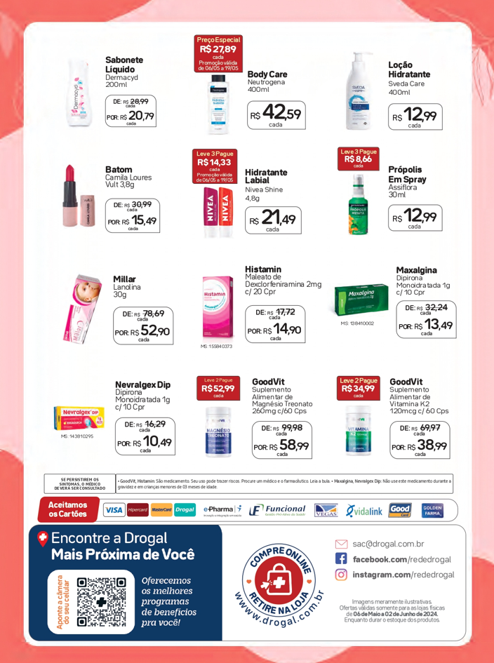 Aproveite nossas ofertas, disponíveis exclusivamente nas lojas físicas, e demonstre todo o seu amor neste Dia das Mães. Venha para a Drogal e faça da data um momento inesquecível para a pessoa mais especial das nossas vidas: nossa querida mãe! 🌷