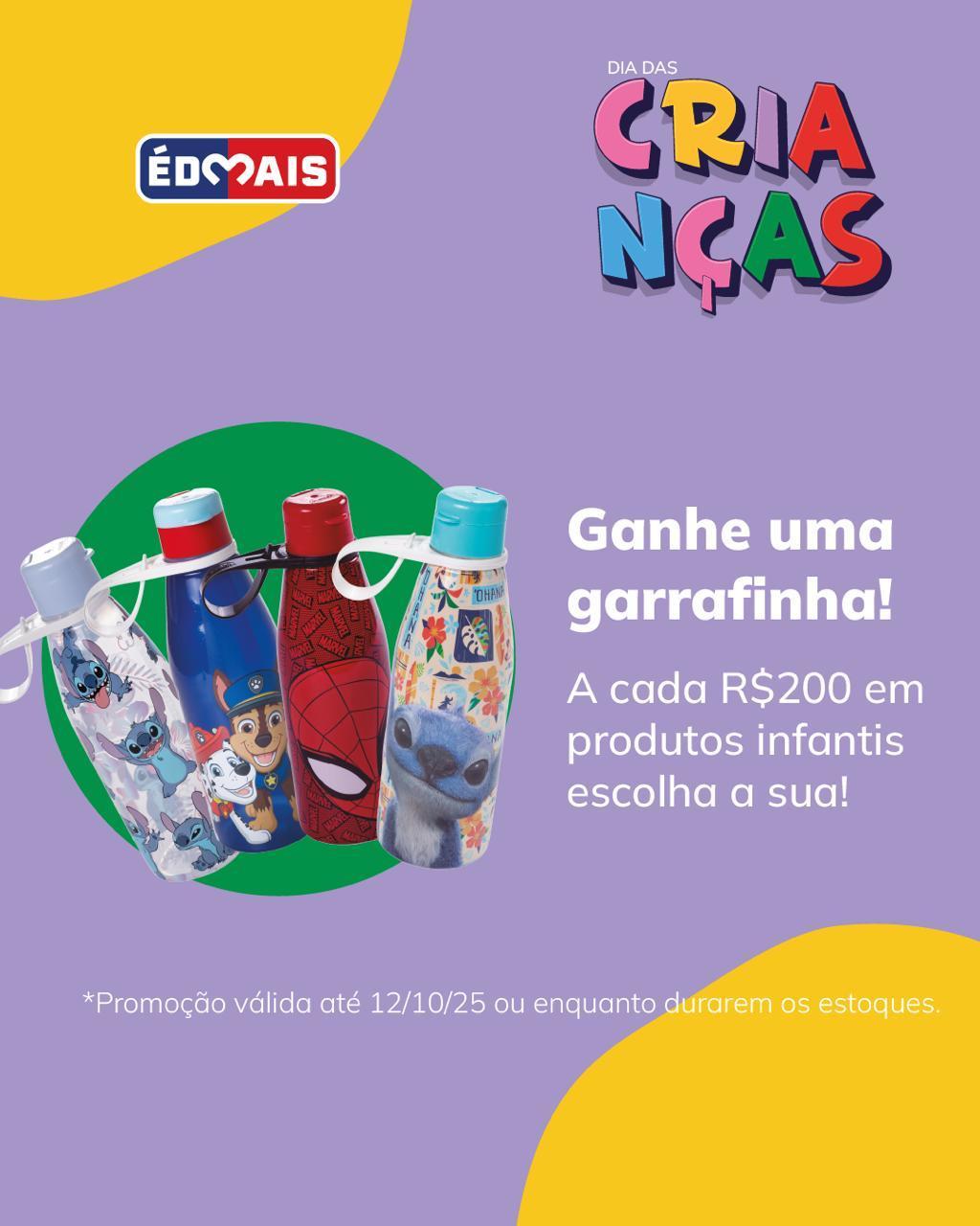 O Dia das Crianças está chegando — e na Édmais, você encontra as melhores roupas infantis com aquele combo perfeito: qualidade + preço baixo! 😍 E tem mais: a cada R$200 em compras na linha infantil, você ganha uma garrafinha exclusiva — escolha a sua e leve um presente extra pra casa! 🥤✨