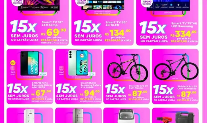 De 06 a 08 de junho, aproveite ofertas imperdíveis em até 24x sem entrada no Cartão Luiza! 💳🔥