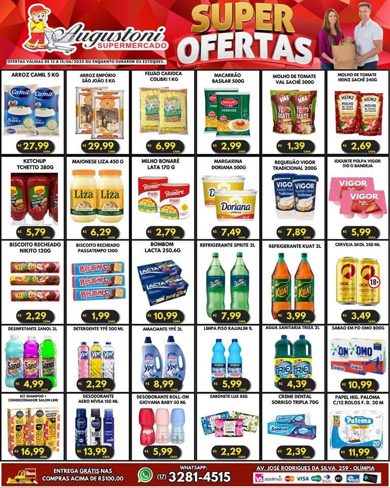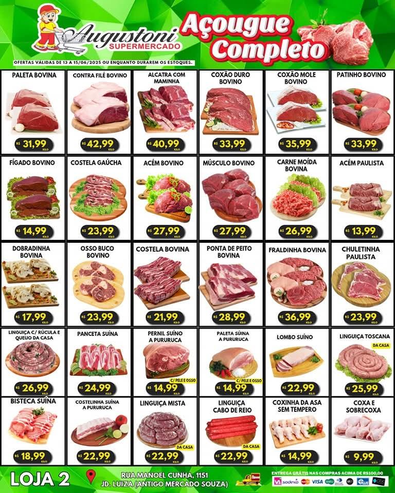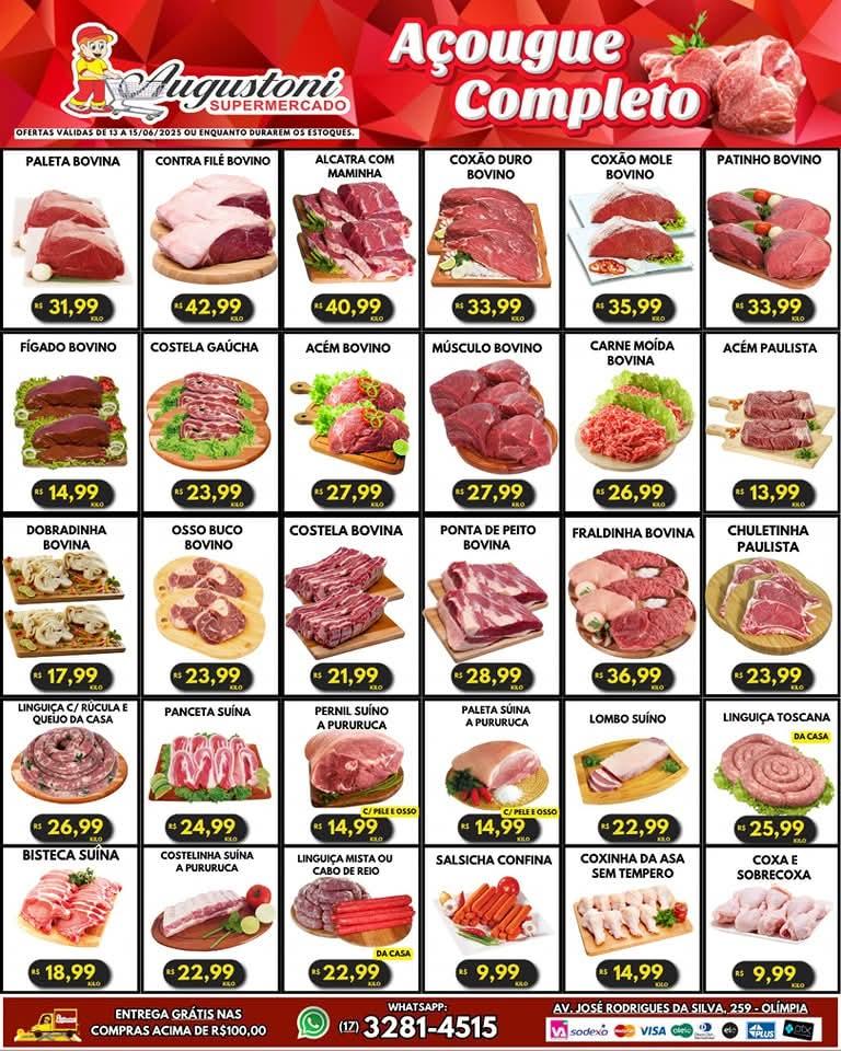Ofertas especiais no açougue e mercearia, com produtos frescos, variedade e aquele precinho que só o Augustoni tem!