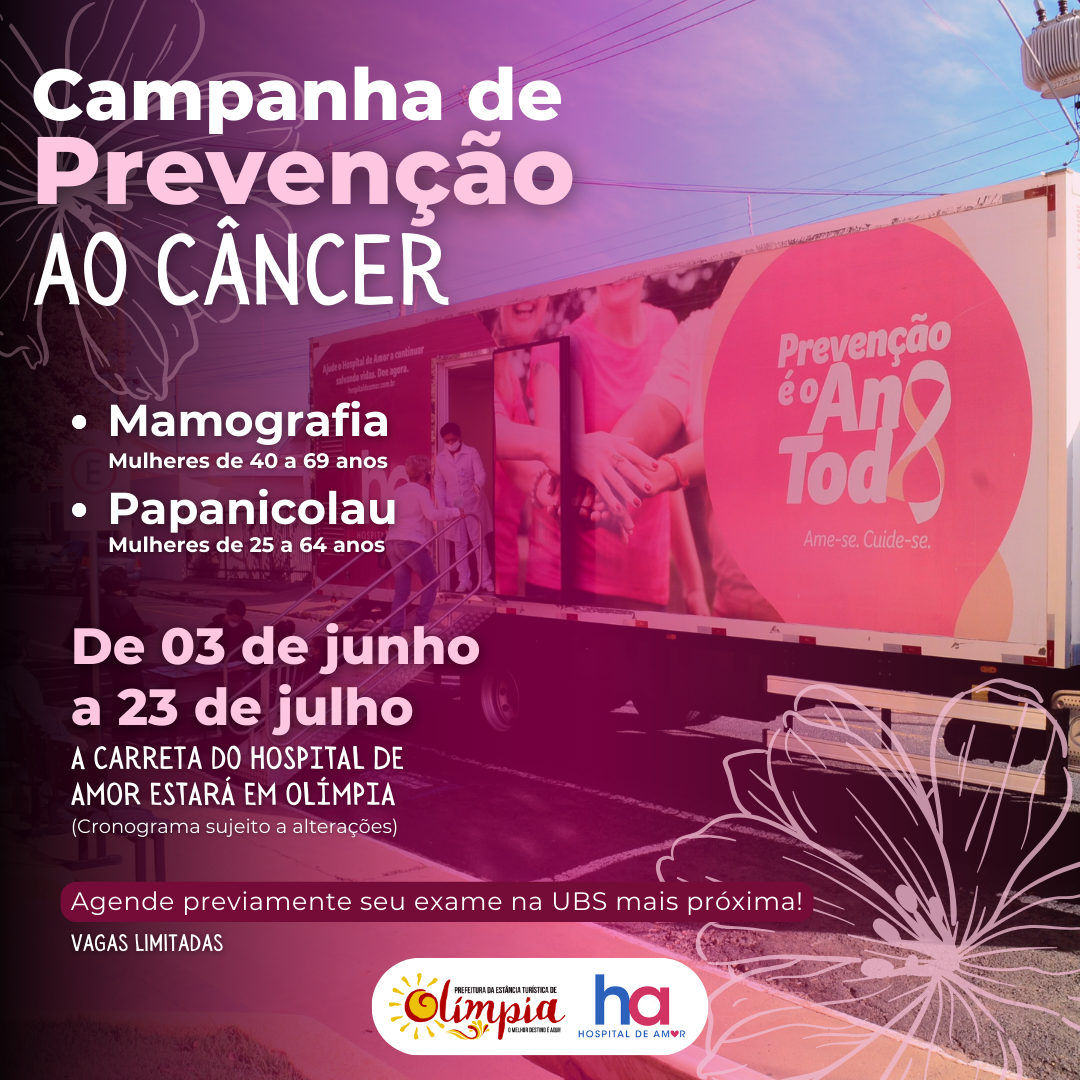 O município realizará a campanha de 03 de junho a 23 de julho deste ano, sendo que a carreta percorrerá as Unidades Básicas de Saúde, o Centro de Referência dos Idosos e o ARE (Postão), conforme cronograma estabelecido.
