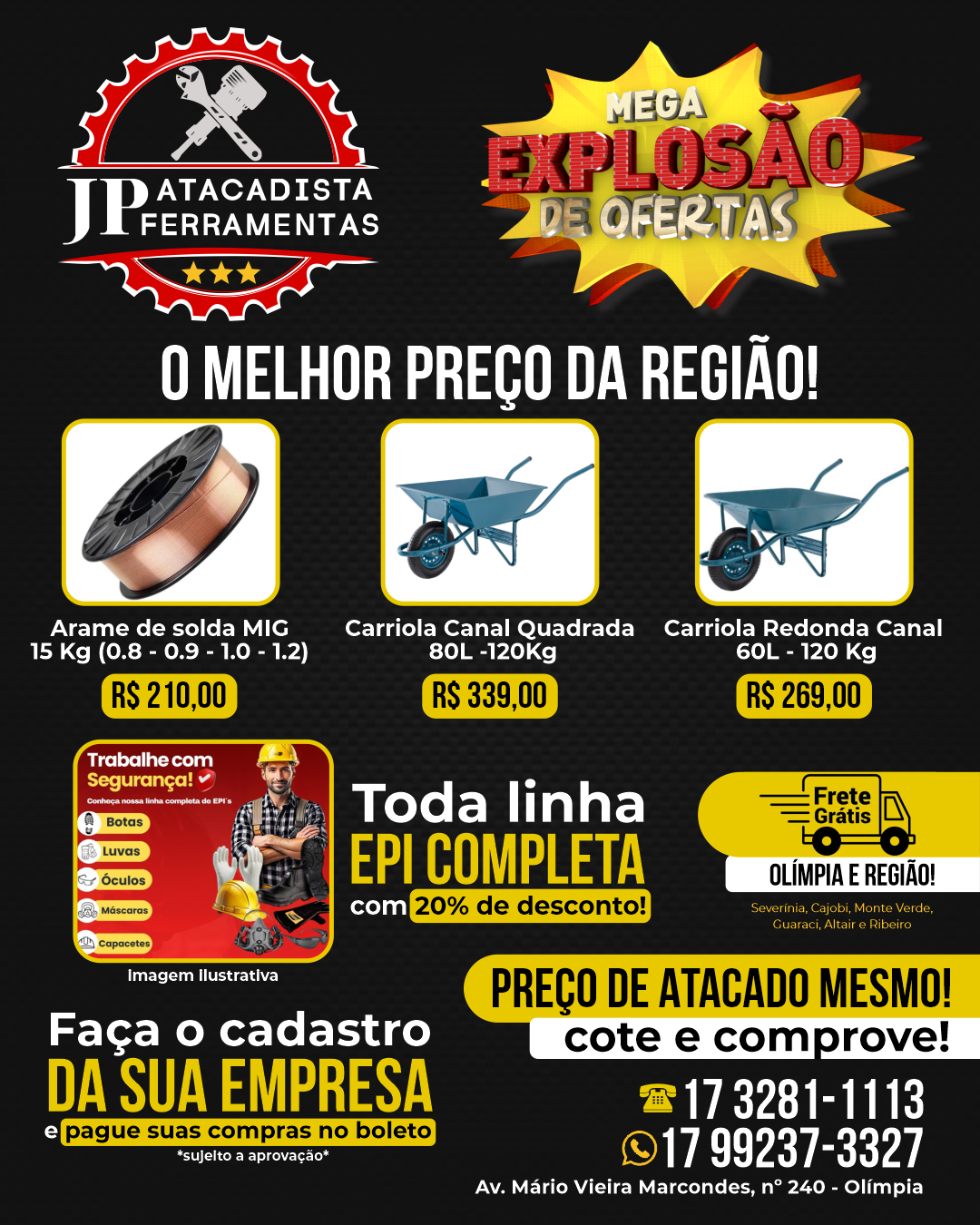 Corra pra JP Ferramentas e Atacadista, em Olímpia, e aproveite!