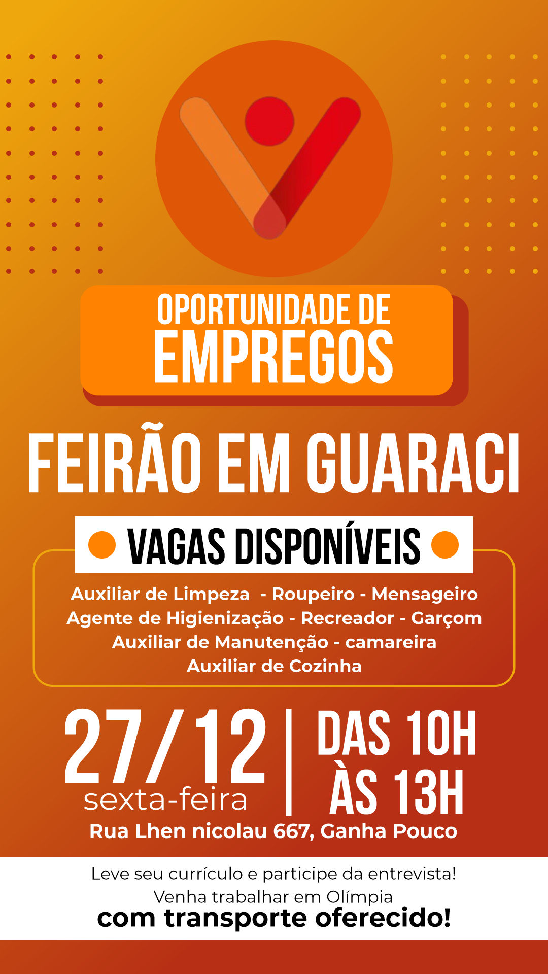 Esta é uma excelente oportunidade para quem deseja ingressar no mercado de trabalho e conta com transporte garantido para Olímpia.