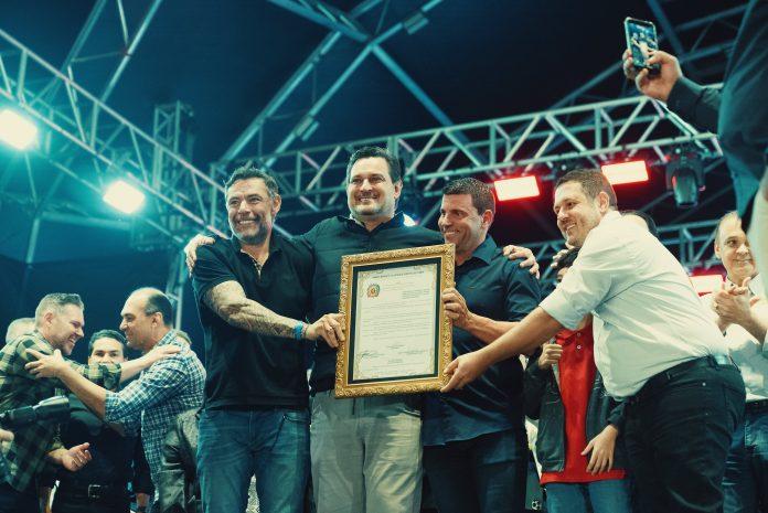 O ato contou com a participação do presidente da Câmara, Flávio Olmos, que realizou a entrega ao lado do autor da propositura. O prefeito Geninho Zuliani e diversas autoridades prestigiaram o momento no palco principal do Recinto do Folclore, diante de um público numeroso que acompanhava a cerimônia de abertura.