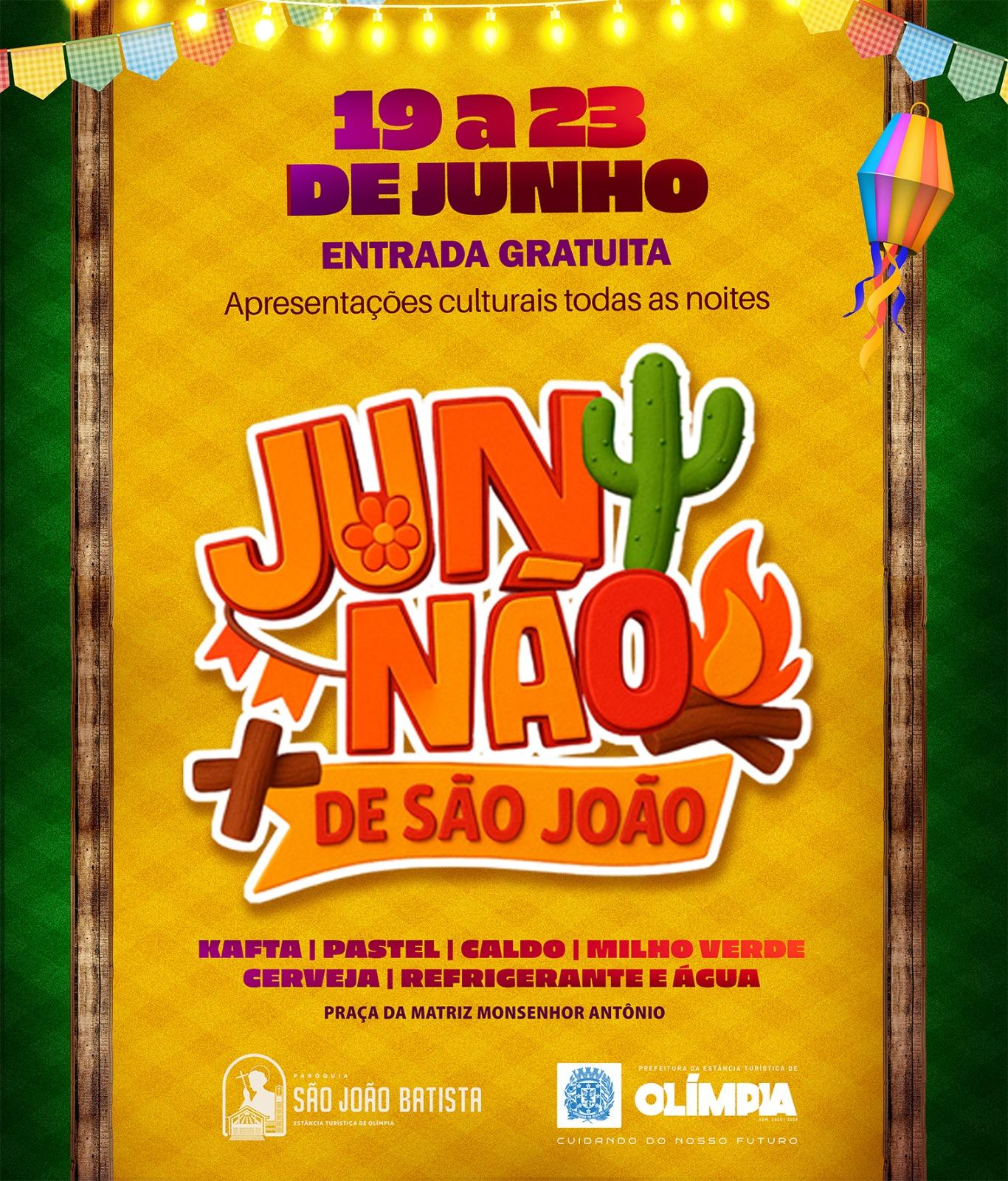 A tradicional festa junina vai invadir a Praça da Matriz “Monsenhor Antônio”, no centro da Estância Turística de Olímpia. Entre os dias 19 e 23 de junho, será realizado o Juninão de São João, organizado pela Paróquia São João Batista em parceria com a Prefeitura, por meio da Secretaria de Cultura e Defesa do Folclore.