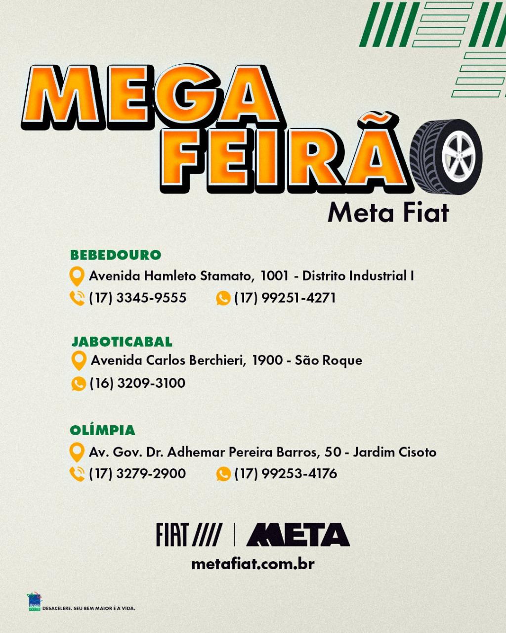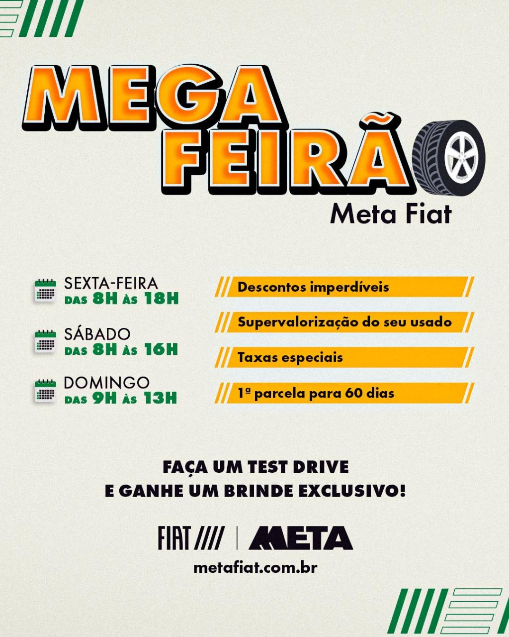 A Meta Fiat preparou um evento especial para quem sonha em trocar de carro com as melhores condições do mercado! Entre os dias 22 e 24 de agosto, acontece o Mega Feirão Meta Fiat, com ofertas imperdíveis e vantagens exclusivas para você sair de carro novo ou seminovo.