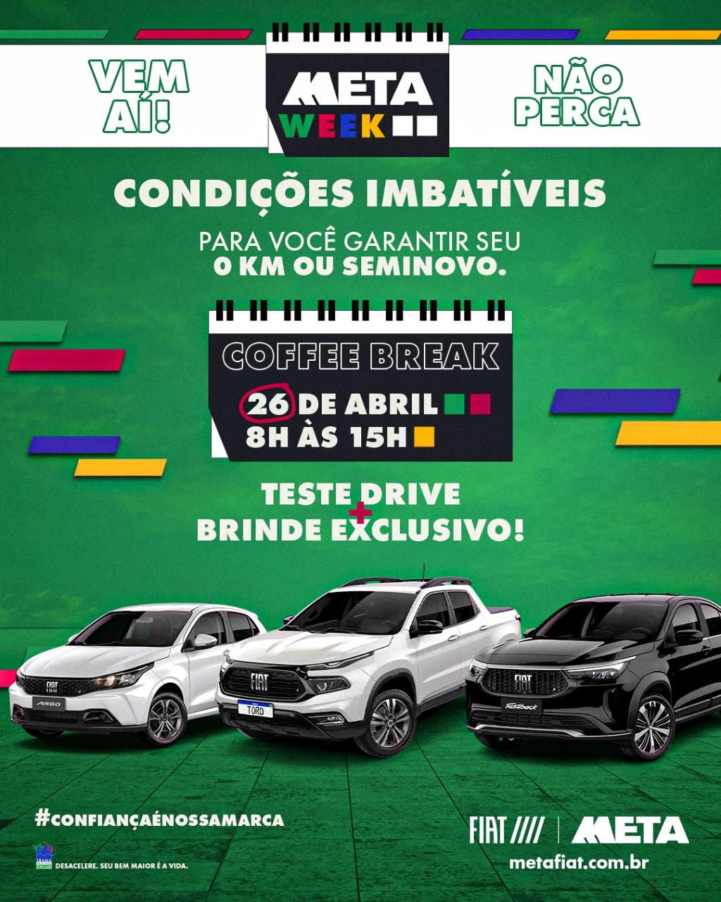 #MetaWeek #SextouDeCarroNovo #ZeroKmÉNaMeta #CoffeeBreakMeta #OportunidadeÚnica