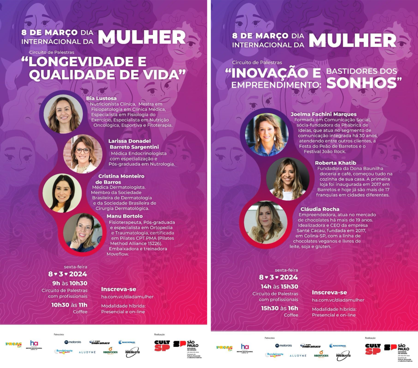 O evento, que tem formado híbrido, reunindo o público presencialmente e online, é aberto gratuitamente, tanto a mulheres, quanto a homens. Para participar, basta realizar a inscrição de forma digital pelo endereço: ha.com.vc/diadamulher