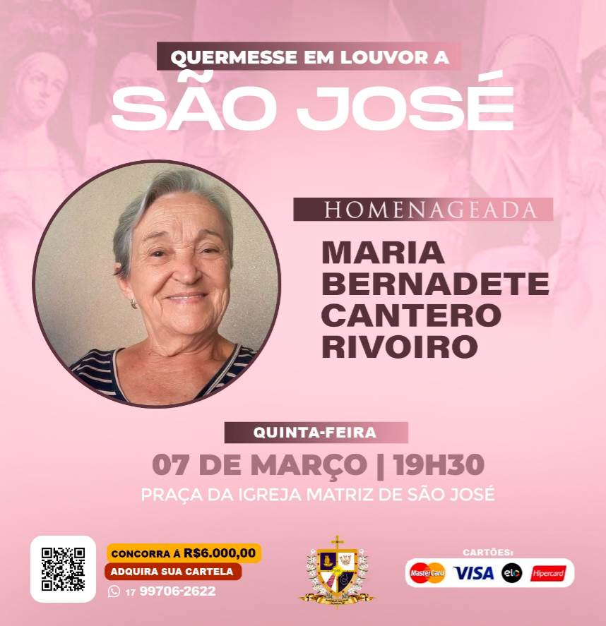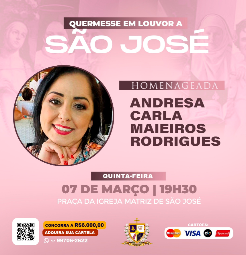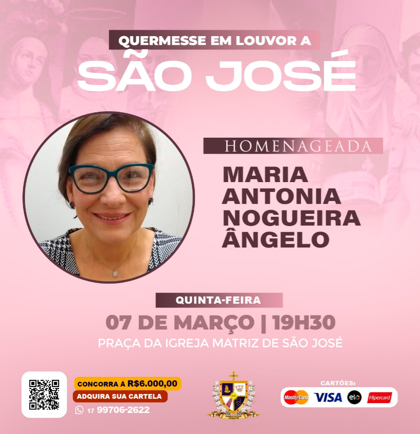 Venha fazer parte dessa celebração e desfrutar de momentos de alegria, cultura e reconhecimento. Estamos ansiosos para compartilhar esse momento especial com você. A quermesse acontece na praça da igreja matriz de São José. Nos vemos lá!