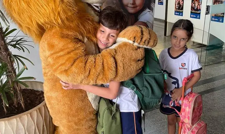 Nesta semana, os alunos do Colégio Eduvale tiveram uma recepção especial: o mascote da escola, sempre alegre e carismático, esteve presente para dar as boas-vindas a todos, enchendo a chegada das crianças de sorrisos e diversão! O mascote do Colégio Eduvale, que simboliza a união e o espírito acolhedor da nossa escola, fez a alegria da criançada e reforçou ainda mais o clima de carinho e cuidado que temos com nossos alunos.
