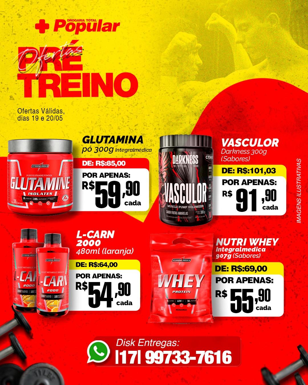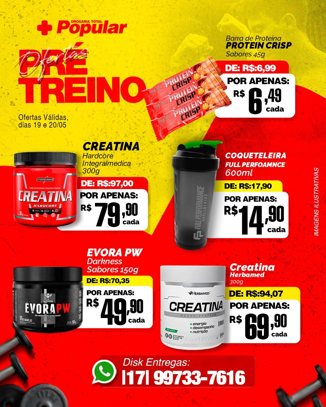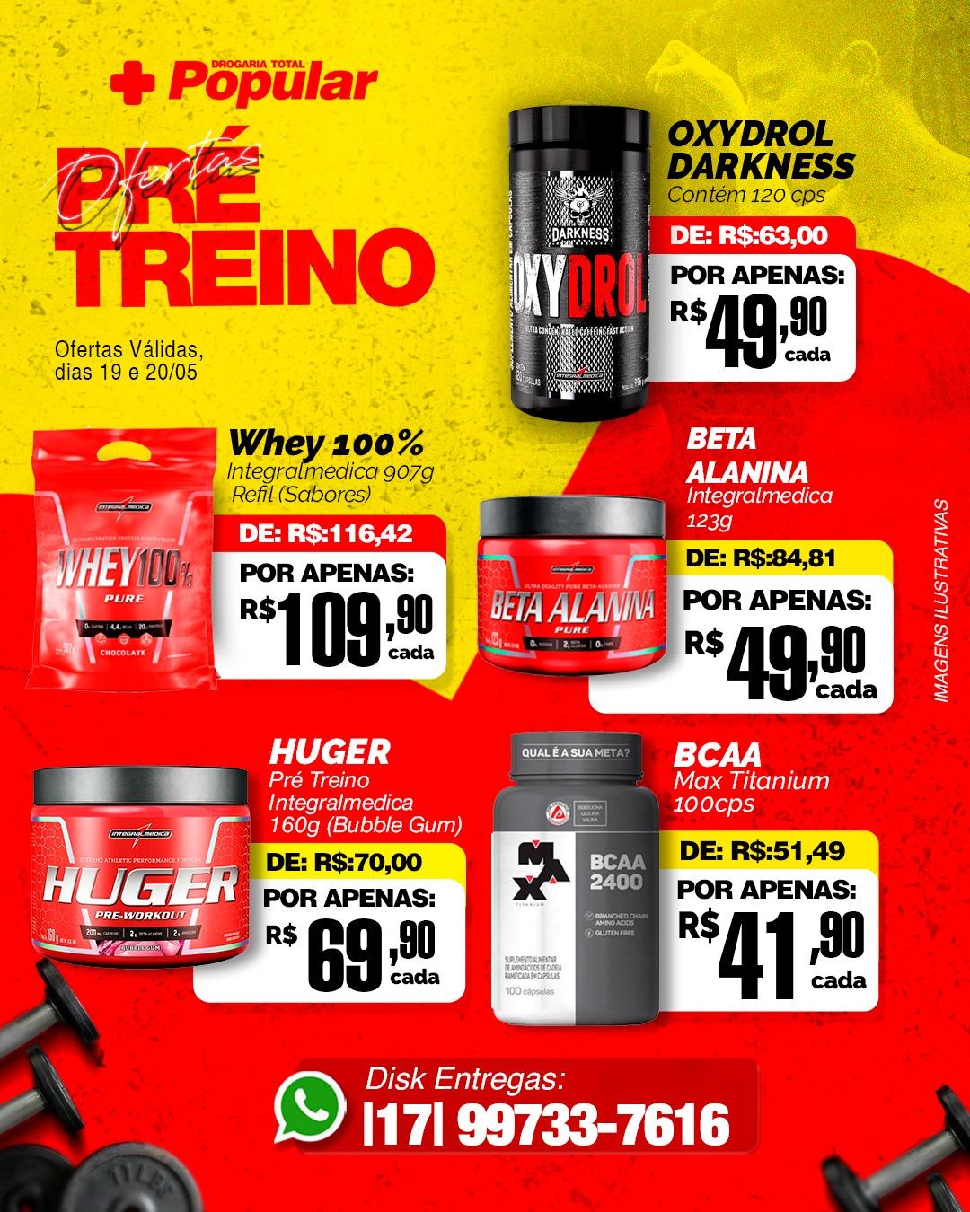 Prontos para um treino poderoso? Na Total Popular, tem ofertas incríveis de pré-treino para você, amante de academia! Temos uma variedade de produtos como barras de proteína, whey Protein, creatina e muito mais.