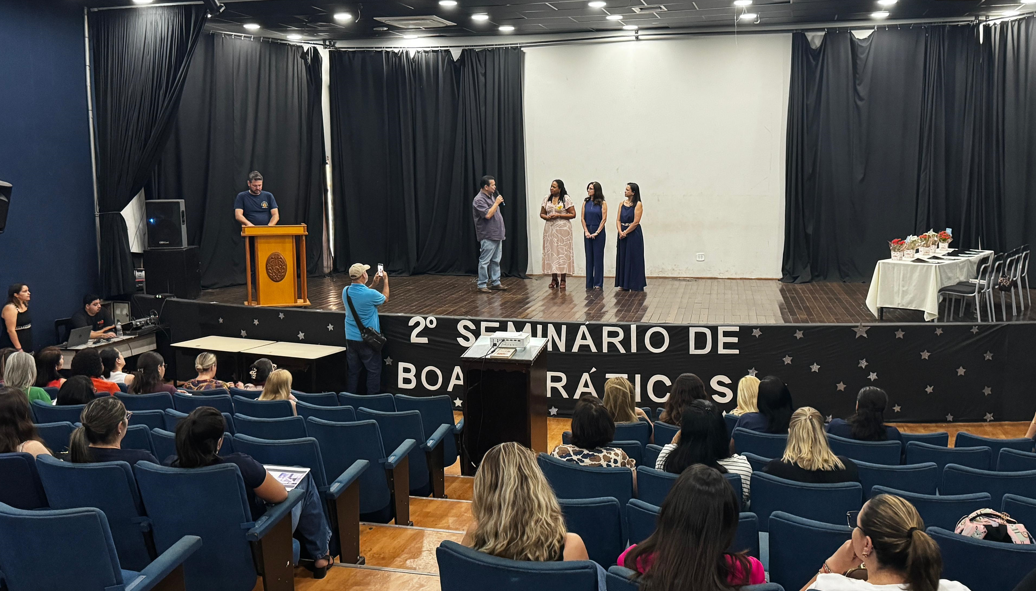 O evento reuniu diretores, professores e demais servidores para a troca de experiências e apresentação de projetos pedagógicos de sucesso. Um dos destaques do seminário foi a premiação da professora Francieli Boizan Fernet, da EMEB “Prof. Maurício César Alves Pereira”, pelo trabalho de Fluência Leitora, voltado ao desenvolvimento da leitura e interpretação textual dos alunos.