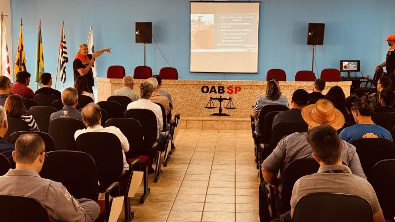 A programação começou pela manhã, na sede da OAB Olímpia, com a parte teórica. A palestra foi conduzida pela Defesa Civil. Na ocasião, foram abordados os principais fatores que levam às queimadas, os impactos ambientais e econômicos causados pelos incêndios e a importância da atuação preventiva nas propriedades rurais.