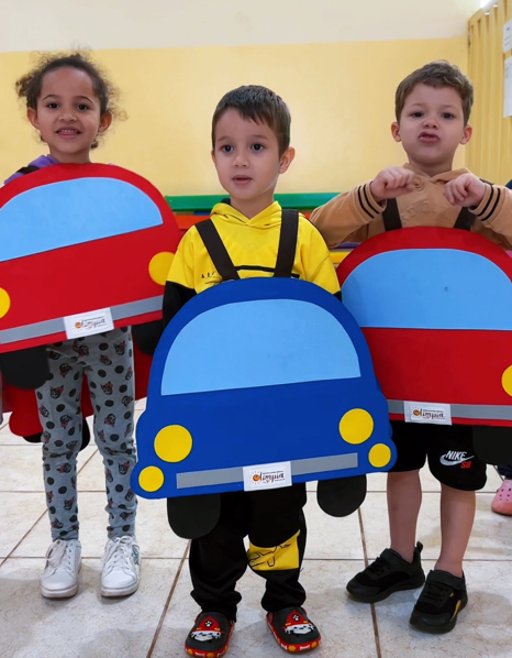 Para alunos da pré-escola, a ação conta ainda com uma atividade prática, na qual, vestidos com fantasias de carros, os alunos exercem o papel de motoristas, pedestres e fiscais de trânsito, aprendendo sobre leis e hábitos para um trânsito mais seguro e transformando as crianças em agentes multiplicadores, com foco na redução de acidentes.