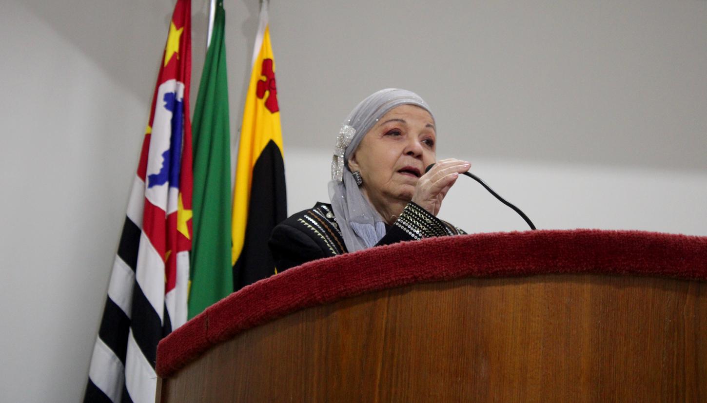 A mesa diretora contou com a presença do secretário municipal de Turismo e filho da homenageada, Beto Puttini; da secretária municipal de Educação, Jéssica Maria dos Santos, representando o prefeito Geninho Zuliani; e do servidor Rogério, responsável pelo cerimonial.