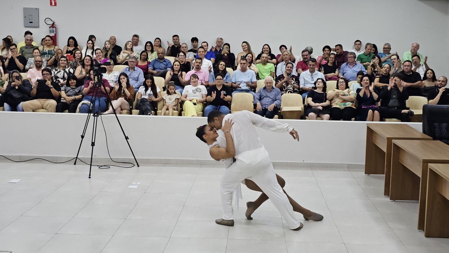 A mesa foi composta pela secretária municipal de Turismo, Priscila Foresti, representando o prefeito Geninho Zuliani; pelo vereador Luiz Salata; pela primeira-dama do Legislativo, Ana Laura Olmos; pelas homenageadas Claudinéia Freire e Marilza Pereira; e pelos filhos Maria Vitória e Tomás Fabro.