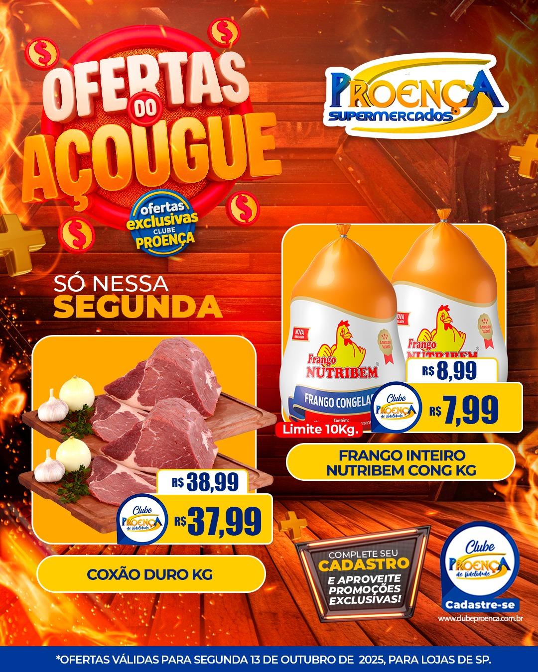 Mas as ofertas não param por aí! O Açougue Proença também entra no clima com promoções imperdíveis válidas somente nesta segunda-feira (13/10):