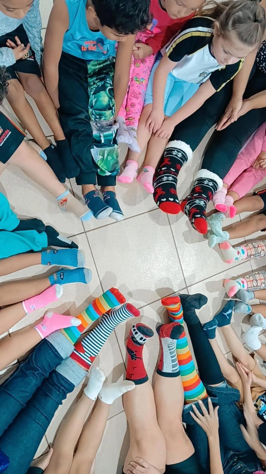 A ideia é incentivar o uso de meias trocadas neste dia, uma iniciativa que tem o objetivo de valorizar a diversidade e reforçar que ser diferente é normal. Desta forma, as escolas municipais propuseram a atividade para toda a comunidade escolar, convidando os pais a vestirem as crianças com meias coloridas e diferentes.