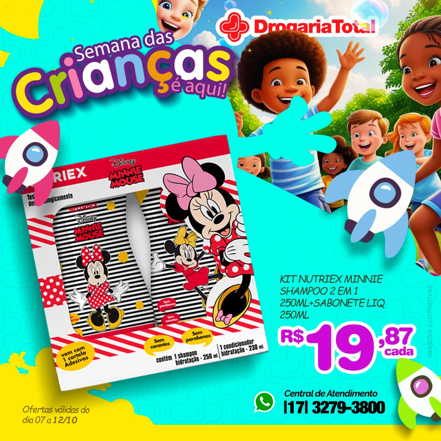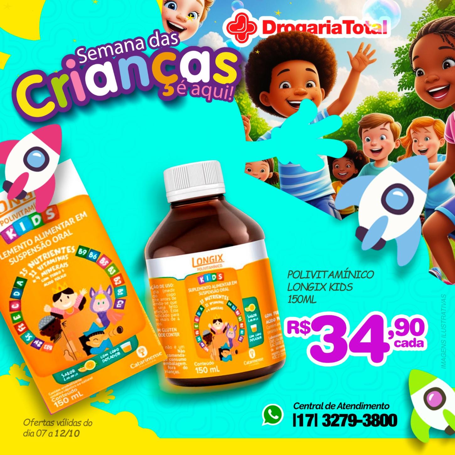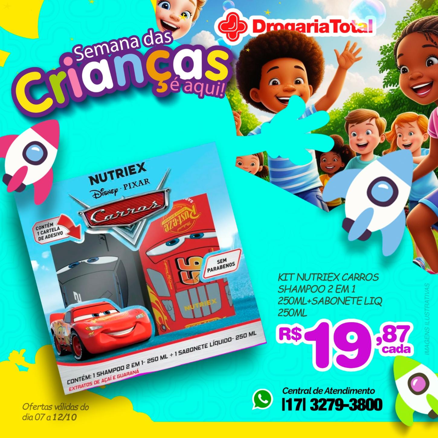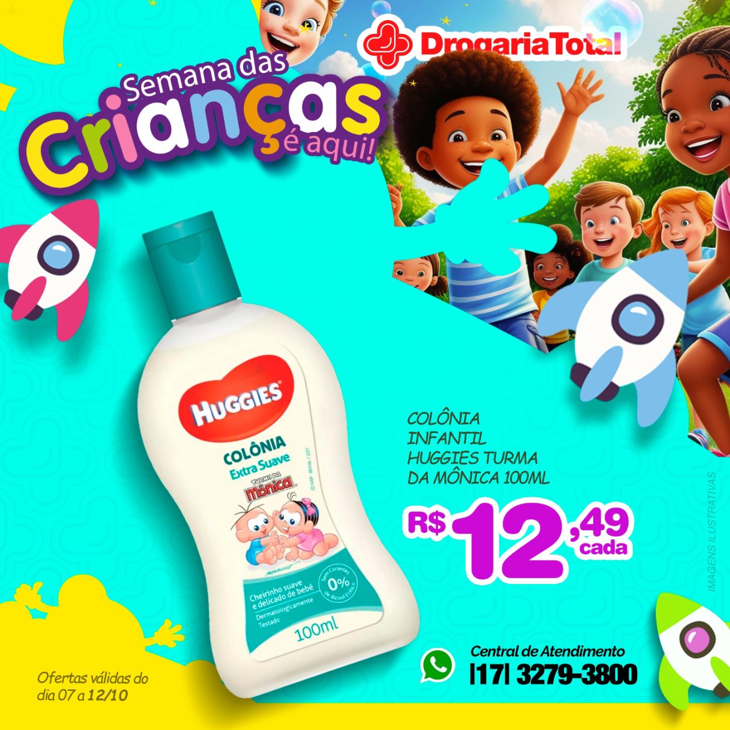Já imaginou garantir os melhores produtos infantis e ainda economizar? Na Drogaria Total você encontra tudo o que precisa para cuidar dos pequenos com carinho e qualidade. Aproveite as ofertas especiais de 07 a 12 de outubro e transforme essa semana das crianças em um momento inesquecível! 💙👶