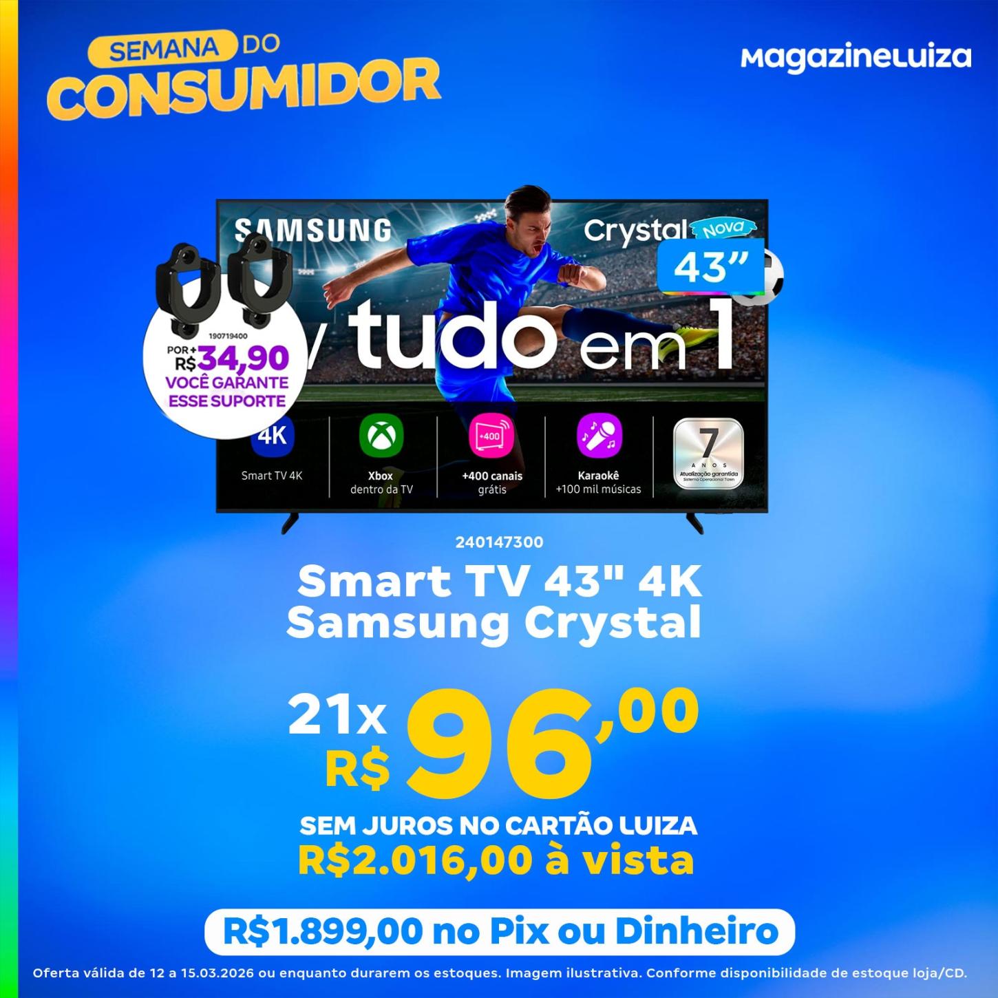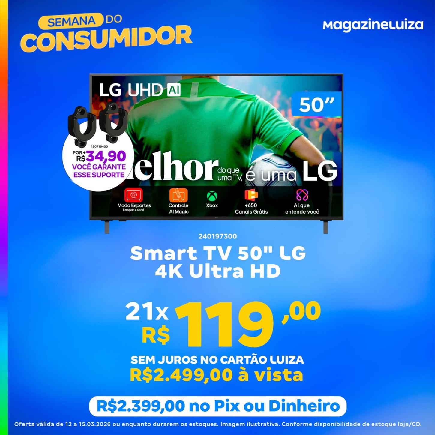 A Semana do Consumidor movimenta o comércio brasileiro com promoções que prometem até 70% de desconto em produtos de tecnologia e eletrodomésticos. Entre os destaques da campanha do Magazine Luiza estão televisores 4K, smartphones de última geração, geladeiras frost free e até itens de cozinha como panelas de pressão e air fryers.