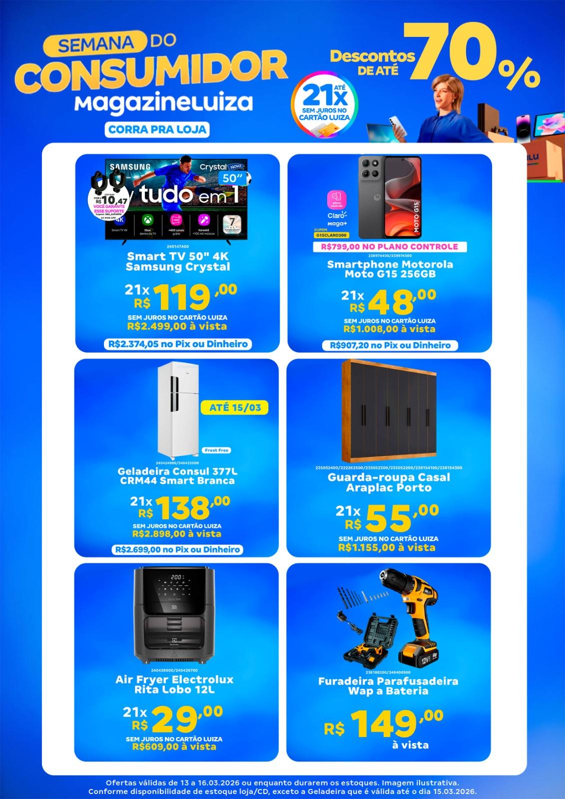 A estratégia da rede combina preços reduzidos com condições de pagamento facilitadas, como parcelamento em até 21 vezes sem juros no Cartão Luiza e valores diferenciados para quem opta pelo pagamento via Pix ou dinheiro.