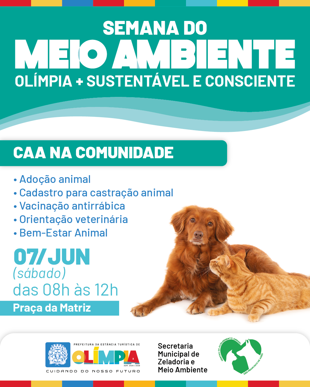 A iniciativa do Centro de Acolhimento Animal “São Francisco de Assis” será voltada à conscientização e ao bem-estar animal, com atividades gratuitas, das 8h às 12h, na Praça da Matriz.