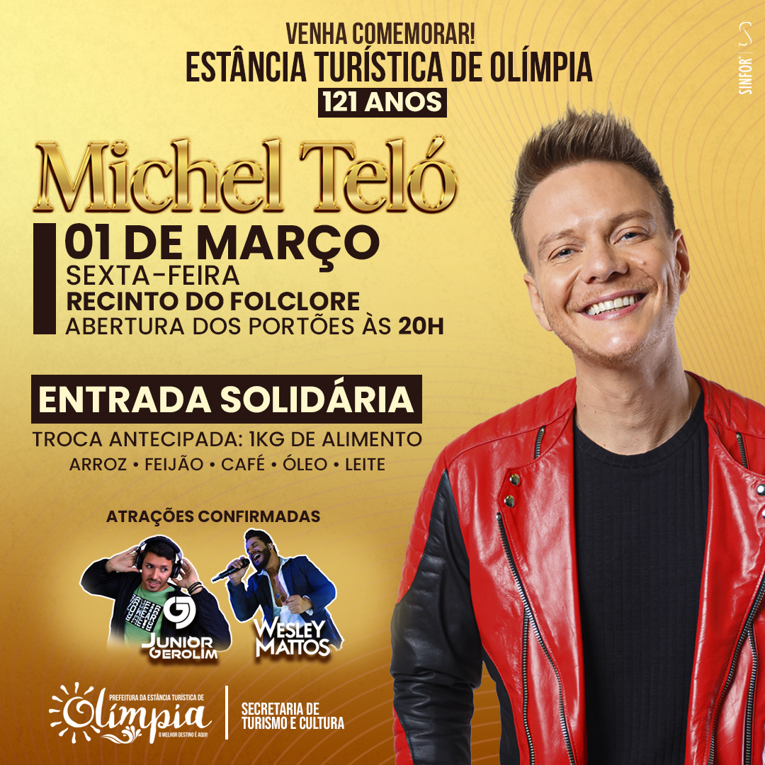 Quem comanda a comemoração será o cantor e compositor sertanejo Michel Teló, com um show no Recinto do Folclore. Além da atração principal, haverá apresentação dos artistas olimpienses Wesley Mattos, que fará a abertura, e do DJ Junior Gerolim, para animar a população.