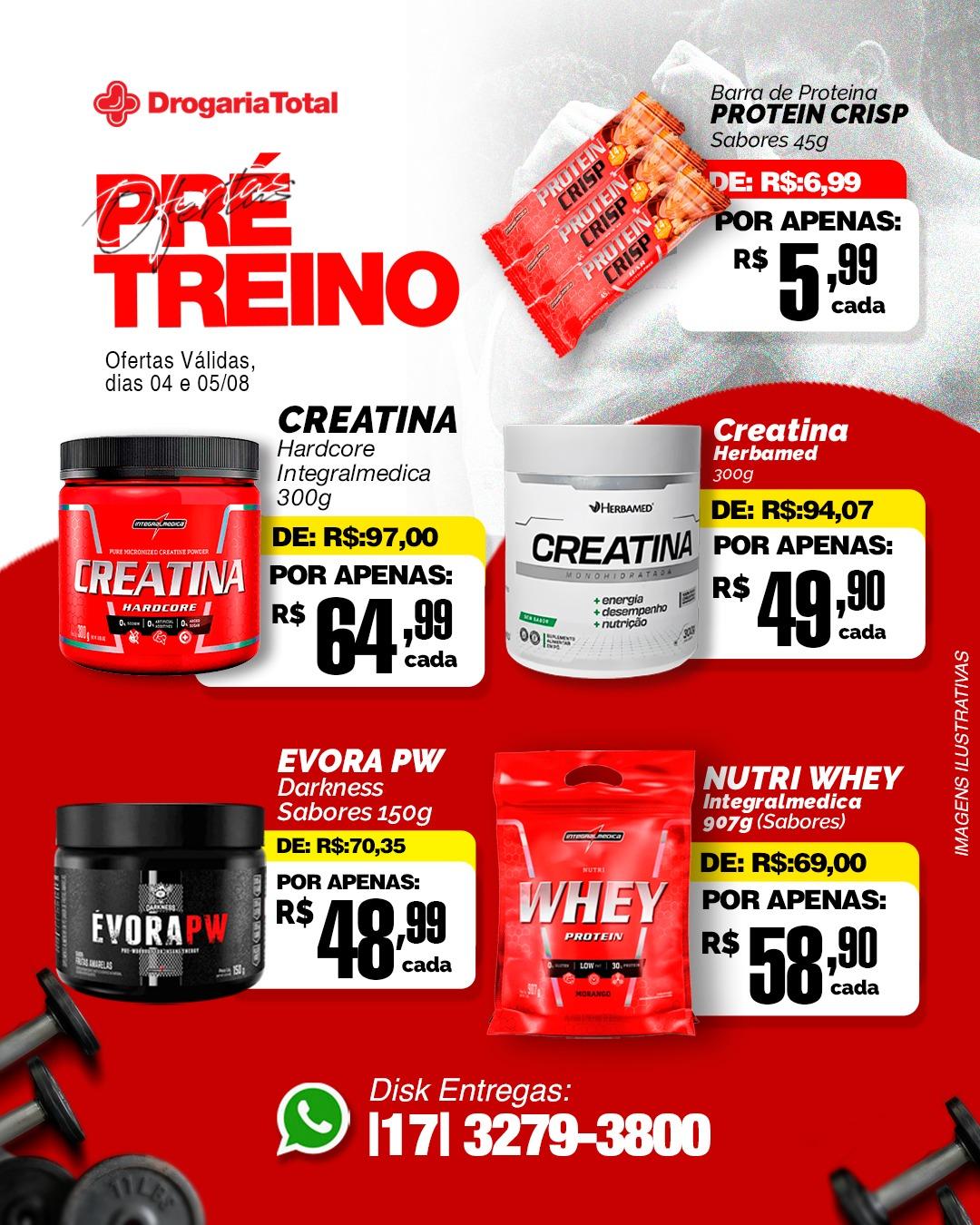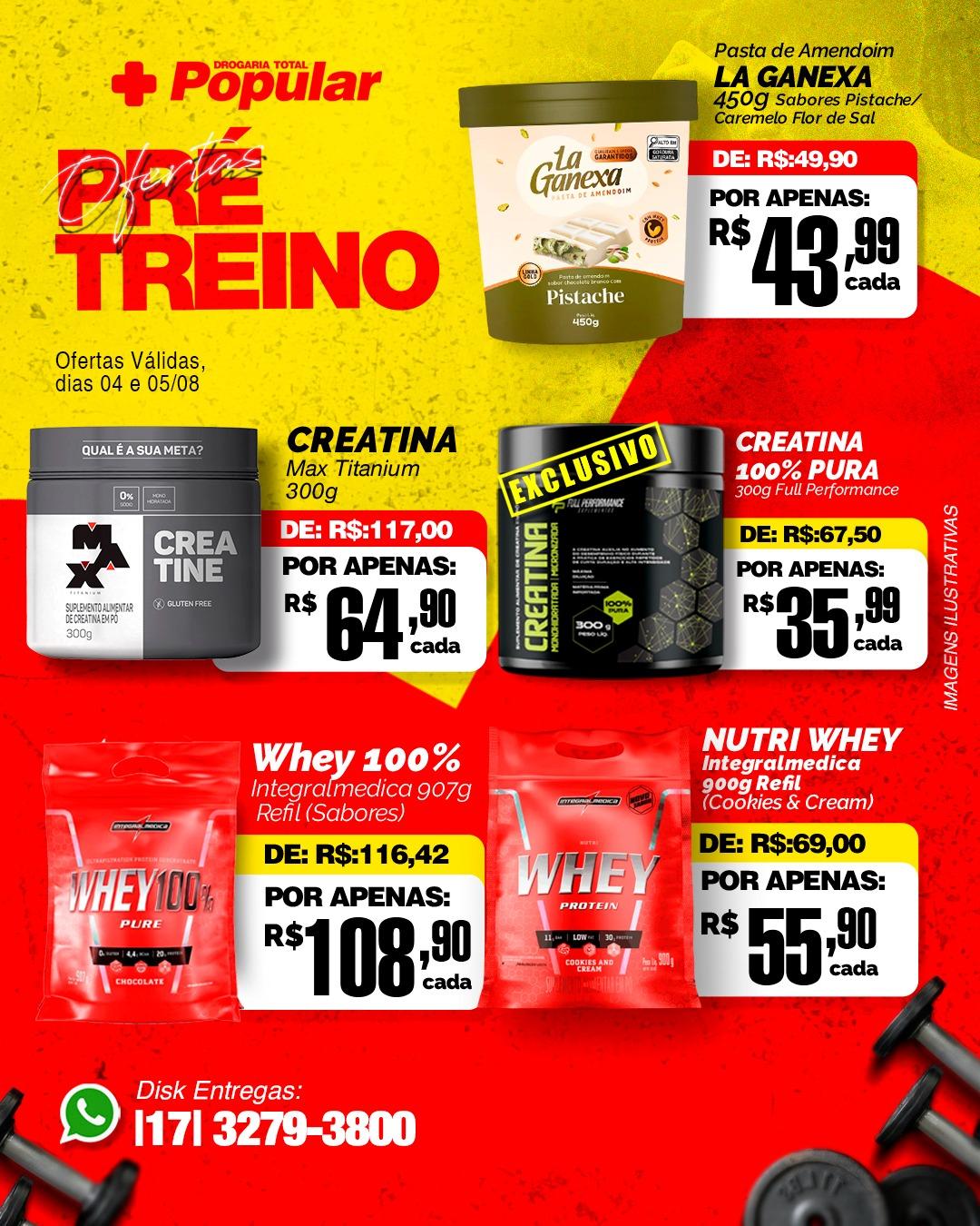 Prontos para um treino poderoso? Na Drogaria Total e Total Popular, tem ofertas incríveis de pré-treino para você, amante de academia! Temos uma variedade de produtos como barras de proteína, whey Protein, creatina e muito mais.