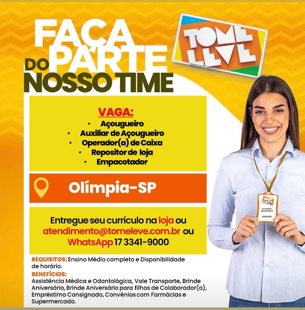 #VagasDeEmprego #TrabalheConosco #TomeLeveOlímpia #Oportunidade #EmpregoOlímpia