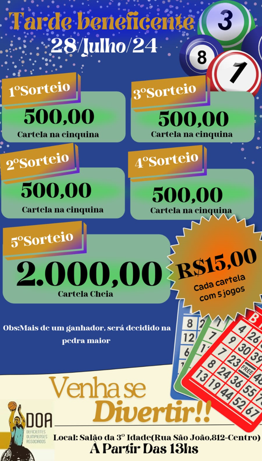 Venha se divertir com a gente e ajudar uma causa nobre! A partir das 13h, no salão da 3ª idade (Rua São João, nº 812 - centro).